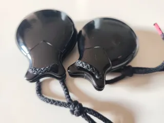 Castañuelas de la marca Hernández, ideales para iniciarse en el aprendizaje. - Color negro brillante. - Incluyen cordón para sujetar.