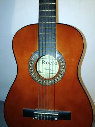 Guitarra clásica Rocío tamaño cadete. Ideal para niños o principiantes. Está en buen estado y funciona perfectamente. Tiene algunas marcas de uso normales (ver fotos). Sonido correcto y cómoda de tocar.