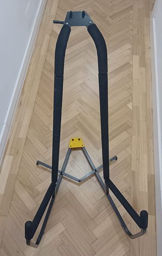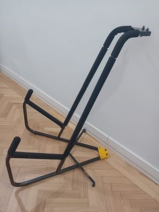 Soporte plegable para contrabajo de la marca Hércules. Diseñado para ofrecer estabilidad y protección. Casi sin usar. - Estructura metálica robusta. - Brazos y base acolchados. - Mecanismo de plegado para fácil transporte.