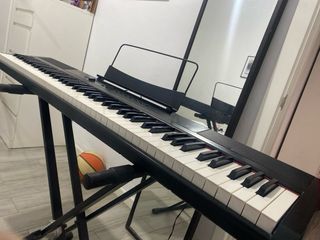 Teclado piano Alesis Melody 61 con soporte para partituras o tablet. Prácticamente nuevo, muy poco uso. Suena muy bien. El pie tiene varias alturas y se pliega completamente. Se venden las dos cosas juntas. - 61 teclas - Altavoces integrados - 300 sonidos - Lecciones de música