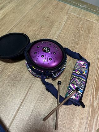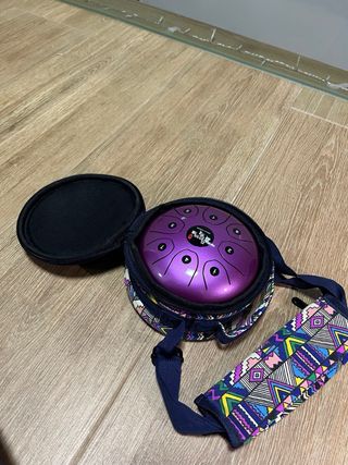 Tambor de lengua de acero de color púrpura, ideal para la meditación y la relajación. Incluye funda y baquetas. - Tambor de lengua de acero. - Color púrpura brillante. - Incluye funda protectora. - Incluye dos baquetas para tocar.