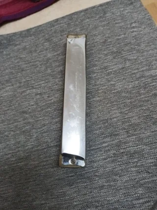 Armónica plateada con acabado metálico. - Diseño clásico. - Grabado de la marca 'Harmonica' y firma.