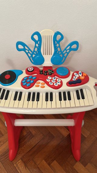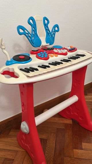 Juguete musical infantil con mesa para que los más pequeños exploren el mundo de la música. - Teclado con teclas blancas y negras. - Incorpora elementos interactivos y de juego. - Base de mesa robusta para mayor estabilidad.
