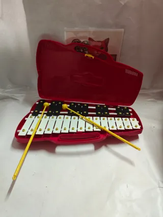 Metalófono / xilófono cromático infantil de la marca Honsuy. Incluye: Estuche rígido original Dos baquetas Láminas en muy buen estado, todas suenan correctamente ⚠️ Detalle importante: el cierre del estuche no cierra correctamente, el resto está en buen estado y el instrumento se usa sin problema. Ideal para: Iniciación musical Niños Colegios o material didáctico Entrega en mano o envío por Wallapop.