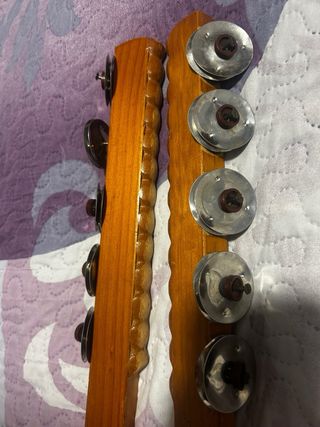 Telecaster hecha con piezas fender originales excepto el cuerpo que lo quería con binding . - Cuerpo de madera aliso con binding, comprado en boxguitar (italia) de la serie made in japan . - Mástil Fender player ii original. - Pastillas fender avri 62. - Puente mim. - hardware serie road worn envejecido. - Golpeador negro.