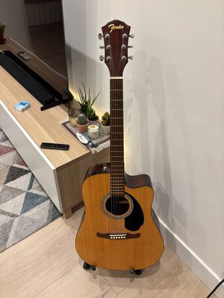 Guitarra acústica Fender FA-125CE. - Cuerpo de caoba. - Mástil de caoba. - Diapasón de palisandro. - Cutaway para fácil acceso a los trastes altos. - Electrificada con preamplificador. Se vende por cambio a guitarra eléctrica. Unicamente hay que cambiar las cuerdas ya que la primera esta rota. Se vende con funda y pila para el preamplificador.