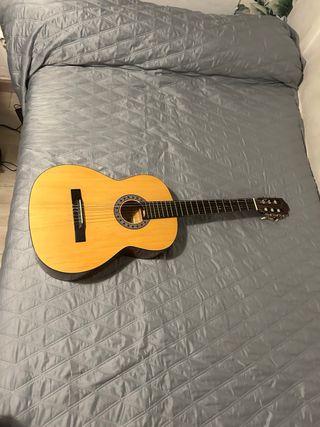 Guitarra Admira en buen estado, ideal para iniciarse o continuar con el aprendizaje musical. Incluye funda y accesorios. - Guitarra Admira. - Funda de transporte. - Soporte para partituras. - Apoyapiés.