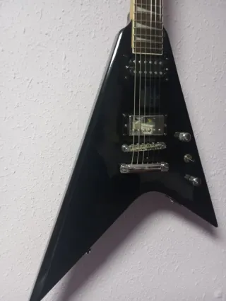 Guitarra eléctrica con un diseño distintivo en forma de V. Cambiadas pastillas por unas de alnico 5 de una Yamaha rgx Puesto logo gibson en la pala Cuerdas nuevas, mástil hidratado