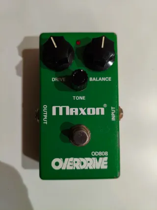 Pedal de efectos de guitarra Maxon OD808 en color verde. Funciona perfectamente, en buen estado. - Controles de Drive, Tone y Balance. - Indicador LED. - Entrada y salida de audio.