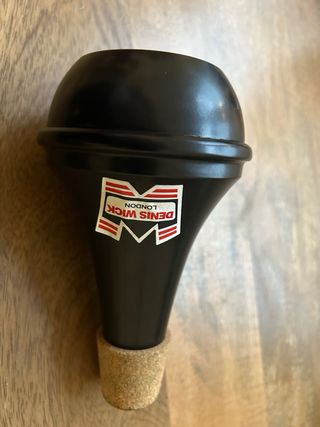 Sordina de estudio para trompeta de la marca Denis Wick. Está como nueva, sin ningún golpe ni desperfecto. Como se puede ver en el corcho, apenas ha sido usada.