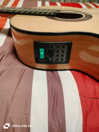 Guitarra flamenca electrificada , Vicente tatay modelo 320n amprificada con MD100 . Su acabado es brillante y su sonido es potente. Comprada en enero del 2026 - Cuerpo de madera. - Mástil de madera. - Diapasón de madera. - Ecualizador de 4 bandas.