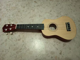 Ukelele de tamaño estándar con un acabado de madera natural y detalles en color burdeos. - SOLO UN USO.. - Cuerpo de madera clara. - Mástil y clavijero en color burdeos. - Cuerdas de nylon. - Con funda. - No tengo WhatsApp, pago en metálico. - No realizó envíos.