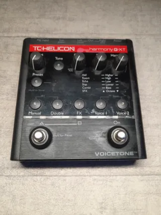 Vendo pedal de armonías vocales TC Helicon Harmony G-XT, en muy buen estado y funcionando perfectamente, con adaptador de corriente. Ideal para cantantes y guitarristas: genera armonías vocales automáticamente siguiendo los acordes de la guitarra.