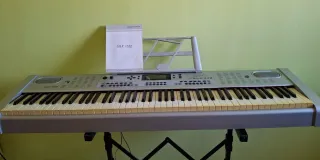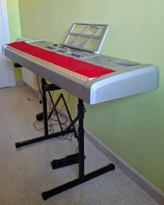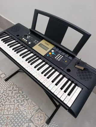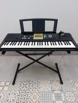Teclado Yamaha en buen estado, listo para usar. Incluye soporte y cargador. - Teclado electrónico. - Marca Yamaha. - Soporte plegable. - Cargador incluido. No se hacen envios