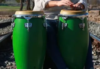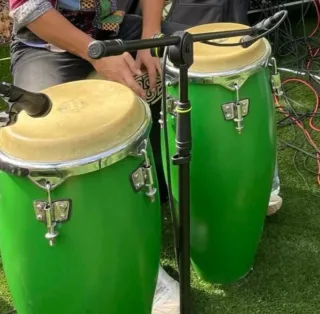 Par de congas de color verde brillante. Ideales para iniciación - Cuerpo de madera. - Herrajes metálicos.