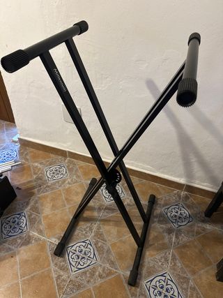 Soporte para teclado o piano digital de la marca Millenium. Es un pie en forma de X, plegable y ajustable en altura. - Color negro. - Construcción robusta. - Fácil de transportar y almacenar.