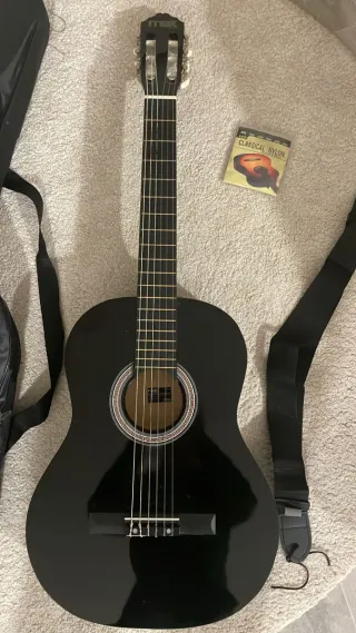 Guitarra clásica negra en buen estado, ideal para iniciarse en la música. Incluye funda. - Color: Negro - Incluye funda de transporte - Cuerdas de nylon