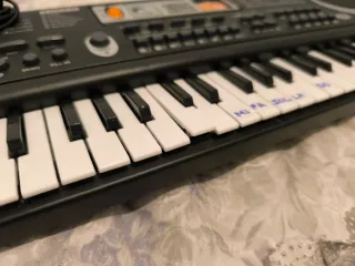Teclado electrónico Music Workstation de 61 teclas. 1 uso solo... 54cm de largo x 16'5cm ancho - 6 demos. - 10 tonos. - 10 ritmos. - Sistema de información musical. Me llegaron 2 idénticos con1 día de diferencia. Tiene 1 tecla subida pero funciona bien...