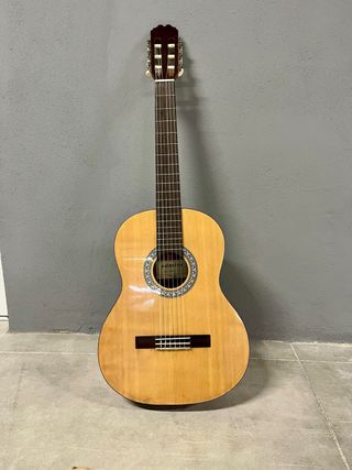 Guitarra española clásica con un acabado en madera natural brillante - Cuerpo de madera. - Mástil de madera. - Diapasón de madera.