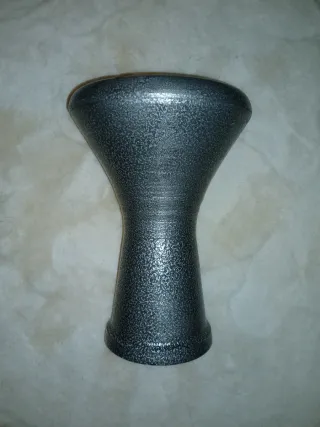 Darbuka de estilo tradicional de Alejandría. Su acabado texturizado le da un aspecto único. - Color: Gris metalizado. - Material: Metal.