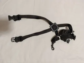 Arnés junior de color negro para saxofón. Diseñado para ofrecer comodidad y soporte. - Material de nailon resistente. - Hebillas ajustables para un ajuste personalizado. - Diseño cruzado para distribuir el peso.