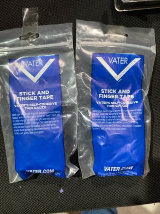 Se venden dos rollos de cinta VATER para baquetas y dedos. Ayuda a mejorar el agarre y prevenir la fatiga. - Cinta autoadhesiva de tejido fino. - Cada rollo mide 1 pulgada de ancho por 30 pies de largo. - Suficiente para aproximadamente 5 pares de baquetas. - También se puede usar para proteger los dedos al tocar la batería. - Disponible en negro, rojo, blanco, azul y verde.