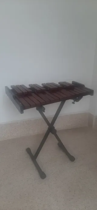 Xilófono de dos octavas con barras de madera oscura. - Soporte metálico plegable. - Ideal para iniciación musical.