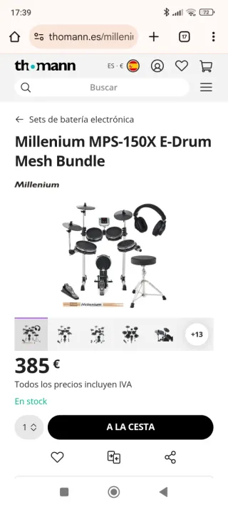 Set de batería electrónica Millenium MPS-150X. Descripción completa en última fotografía. Se compró nueva en marzo de 2023 (tengo factura). Tal cual se vern la página de Thomman. Incluye módulo de sonido, pads, pedales, soportes y auriculares. Cómo nueva. Apenas se ha usado. No hacen envíos para preservar el instrumento.