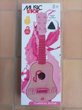 Guitarra clásica de juguete para niños de la marca Music Star. Ideal para iniciarse en la música. - Color rosa. - Incluye púa. - Recomendada para mayores de 3 años.