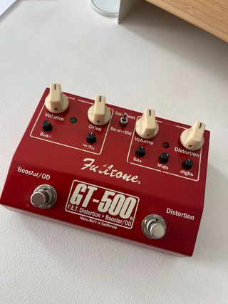 Pedal de efectos Fulltone GT-500 fabricado en USA. Combina distorsión y booster/overdrive. - Controles: Volume, Drive, Bass, Mids, Highs. - Modos: Distortion, Booster/OD. - Tipo de circuito: F.E.T.