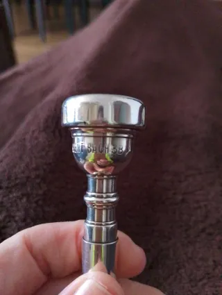 Boquilla para trompeta marca Bach 3B, del 95'. Ha tenido poco uso y guardada años en caja por colección y bien conservada. Con alguna marca muy pequeña(se ve en la foto), sin afectar a la estética ni al uso. Muy cómoda y sonido grande y redondo. - Modelo: Bach 3B - Año de fabricación: 1995 - Material: plateada