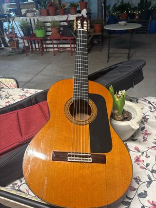 Guitarra clásica de la marca Cibeles con un acabado en color naranja. - Cuerpo de madera. - Diapasón oscuro. - Cuerdas de nylon. La guitarra tiene marcas de uso por los años, pero esta en buenas condiciones, la doy con la funda