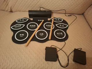 Batería electrónica portátil con diseño enrollable para fácil transporte y almacenamiento. Incluye baquetas. - Pads de batería y platillos. - Sonidos de alta calidad. - Conexión USB.