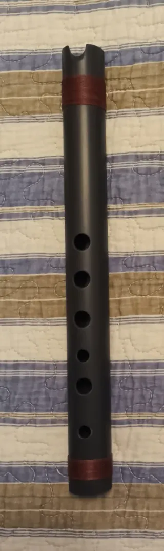 Quena de PVC afinada en La mayor a 440hz. Se ha dado consistencia a las paredes con 4 o 5 capas de pintura en aerosol, con lo que se consigue un sonido más logrado y auténtico, aparte de mejorar el aspecto. - Sonido estable sin afectarle los cambios de temperatura.