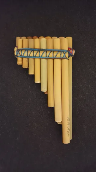 Zampoña Chuli en tonalidad de Re menor - Fa mayor. Instrumento de viento andino fabricado en caña o bambú de Bolivia. Afinado a 440hz. Es la pequeña de la familia de las zampoñas. - Construcción artesanal en cañas de diferentes tamaños.