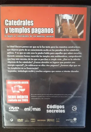 Documental Códigos Secretos: Catedrales y templos paganos. Serie inédita rodada en 2005. - Contenido: De Egipto al conocimiento de los maestros canteros. - Formato: DVD Video. - En muy buen estado
