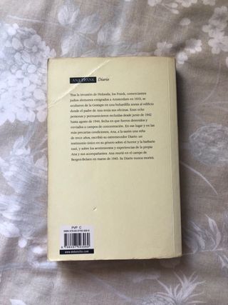 Libro en buen estado. Versión completa en español del famoso diario escrito por Ana Frank durante la Segunda Guerra Mundial. Ideal para estudiantes, lectores de biografías o interesados en la historia