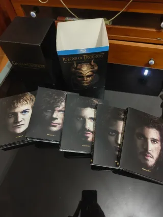 NO SE VENDEN TEMPORADAS SUELTAS Colección completa de Juego de Tronos en Blu-ray. - Incluye las temporadas 1 a 5 en una caja. - Temporada 7 completa en Blu-ray. - Temporada 8 completa en Blu-ray.