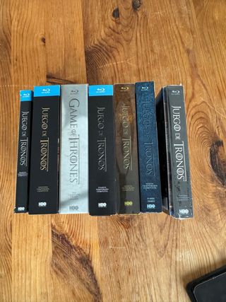 Colección ediciones coleccionista de Juego de Tronos Siete temporadas en formato Blu-ray. Todas en castellano - Incluye las temporadas 1, 2, 3, 4, 5, 6 y 7 con todos sus extras - Formato Blu-ray. Pago y envío fuera de la app