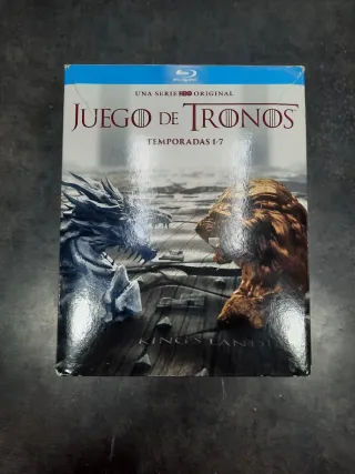 7 temporadas completas de Juego de Tronos en Blu-ray. Las cajas están en buen estado. - Incluye las temporadas 1-7(desde la tercera sin abrir) - Edición en español. - Formato Blu-ray.