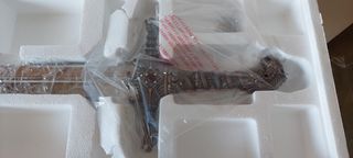 Réplica oficial de la espada Guardajuramentos (Oathkeeper) de la serie Juego de Tronos. Hoja fabricada en acero inoxidable y mango de metal fundido bañado en bronce con bisutería. Medidas: total 105cm y hoja de 81cm. Peso aproximado de 1700g Placa de exhibición de madera serigrafiada con el sello de la casa Tarth de Castillo del Atardecer (Evenfall Hall) Licencia oficial y certificado de autenticidad. Caja original. Fabricante: Valyrian Steel. Producto descatalogado. #juegodetronos #lannister #jaimelannister #briennedetarth #espada #espadaoficial #valyriansteel