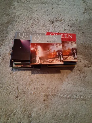 Colección de libros y CDs del legendario grupo Queen. - Incluye material relacionado con la banda. - Ideal para fans y coleccionistas.
