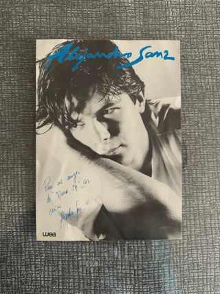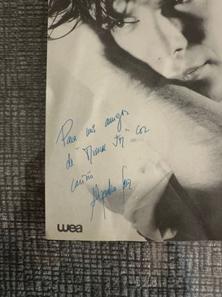 Fotografía firmada por Alejandro Sanz en 1991. Tamaño: 15x18,5 centímetros.