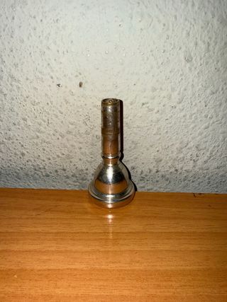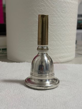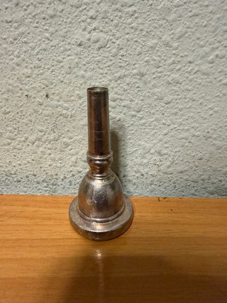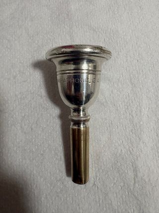 Boquilla para bombardino, ideal para principiantes. - Material metálico plateado.