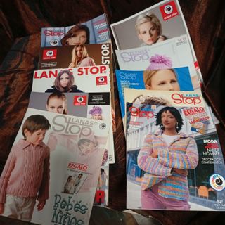 Lote de diez revistas de Lanas Stop para labores de lana, incluye patrones, modelos e instrucciones para confeccionar prendas de lana.