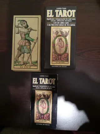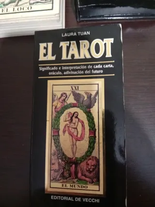 Estuche de cartas del tarot de Laura Tuan, el estuche está un poco tocado (ver fotos), pero el libro guía y el juego de 78 cartas, se encuentran en buen estado El libro guía tiene en las primeras páginas marcas de un sello de tinta roja.