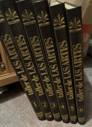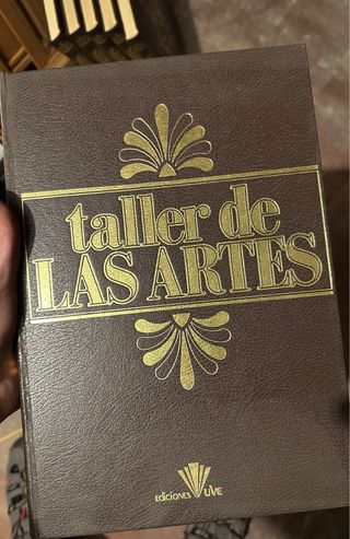 La colección Taller de las Artes de Ediciones UVE (Madrid, 1980) es una enciclopedia gráfica de 6 tomos en tapa dura similpiel marrón con dorados, cubriendo técnicas artísticas como óleo, acuarela, escultura y más, con ~1800 páginas ilustradas en color y B/N (31x21,5 cm).