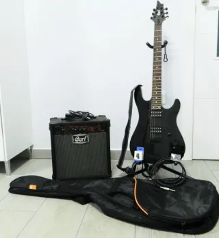 Vendo este pack completo de Cort, ideal para principiantes que buscan un sonido potente y una estética impecable en negro mate. La guitarra es una Cort KX100, conocida por ser muy cómoda y versátil. El pack está listo para conectar y tocar, jolvídate de comprar accesorios por separado! ¿Qué incluye el kit? Guitarra Cort KX100 (Black): Un diseño moderno con mástil muy cómodo. Amplificador Cort MX15 (15W): Potencia perfecta para practicar en casa con buena definición. Accesorios esenciales: Funda, correa ajustable, cable, afinador y púas.