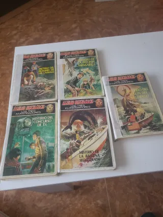 Lote de 5 libros de Alfred Hitchcock, cada libro vale 4 euros el lote entero 15. El lote se compone de: - Misterio del hombre de las cavernas - Misterio de la paloma mensajera. - Misterio del peñón del náufrago. - Misterio de la ballena secuestrada - Misterio del concurso de T.V. Libros con evidentes signos de desgaste por el uso y el paso del tiempo. Todos tienen el lomo arreglado con cinta como se puede observar en las fotos