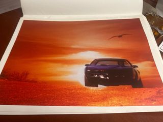 Póster promocional de la serie El Coche Fantástico (Knight Rider). - Presenta el icónico coche KITT. - Incluye imagen de David Hasselhoff. - Licencia oficial de Universal City Studios LLC. y Altaya.